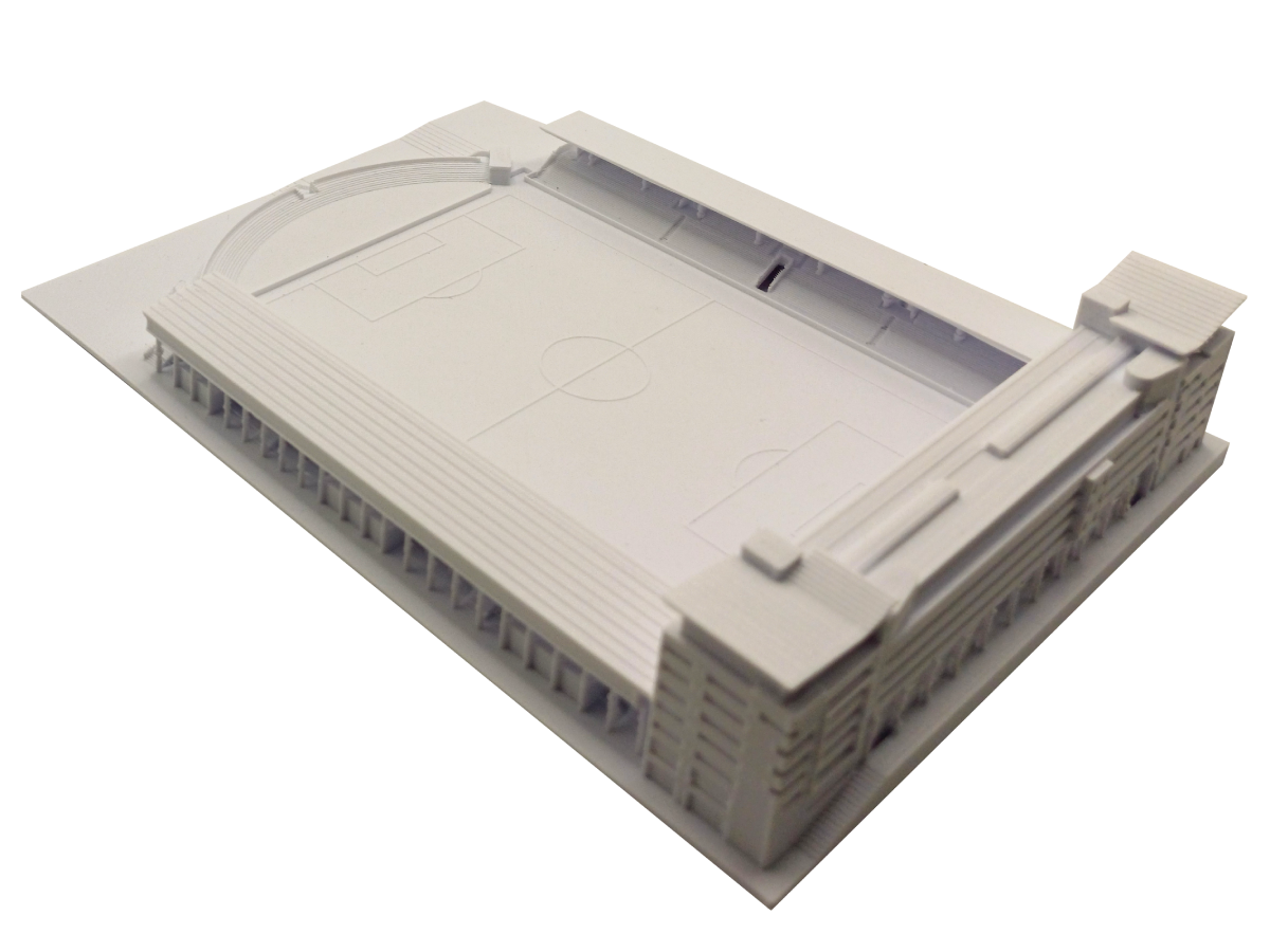 - Verklighetstrogen modell i skala 1:1000, uppritad efter bygghandlingar